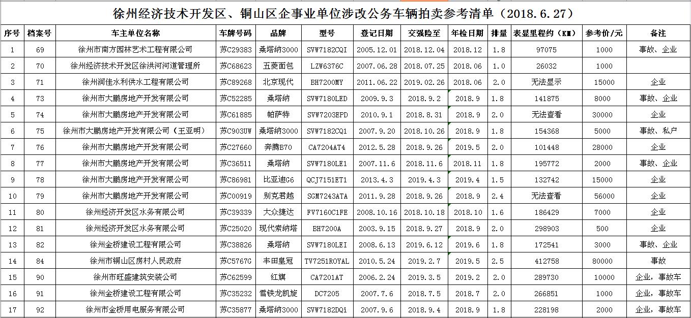 特別鳴謝交通銀行股份有限公司徐州分行對涉改公車拍賣活動的大力支持!