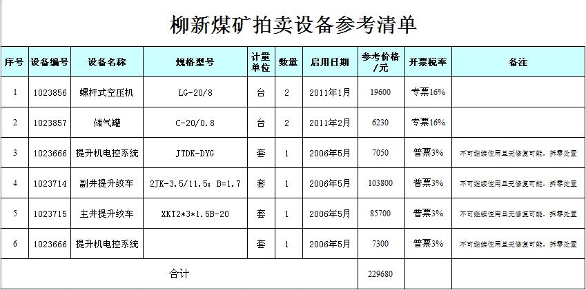 關注微信公眾號我公司受委托,定于2018年7月25日10時在徐州市中山南路55號副樓三樓本公司拍賣大廳公開拍賣:徐州市大劉煤礦、柳新煤礦的二手設備一批。
