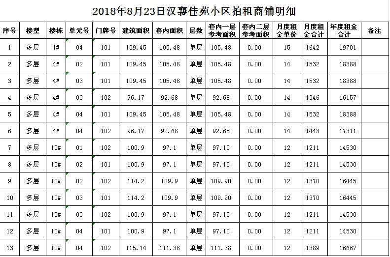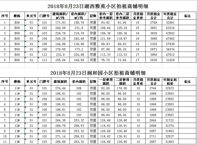 我公司受委托,定于2018年8月23日10時在中山南路55號本公司拍賣廳對以下小區(qū)商鋪公開拍租:湖西雅苑、和風雅致、漢襄佳苑、尚景園、潤和園、嘉和雅苑等。商鋪共數(shù)十套,均為空房,面積分別為一百至數(shù)百平方米不等。租期均為3年。