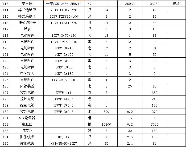 淮陰力源電力實(shí)業(yè)開發(fā)有限公司廢舊物資拍賣參考明細(xì)表