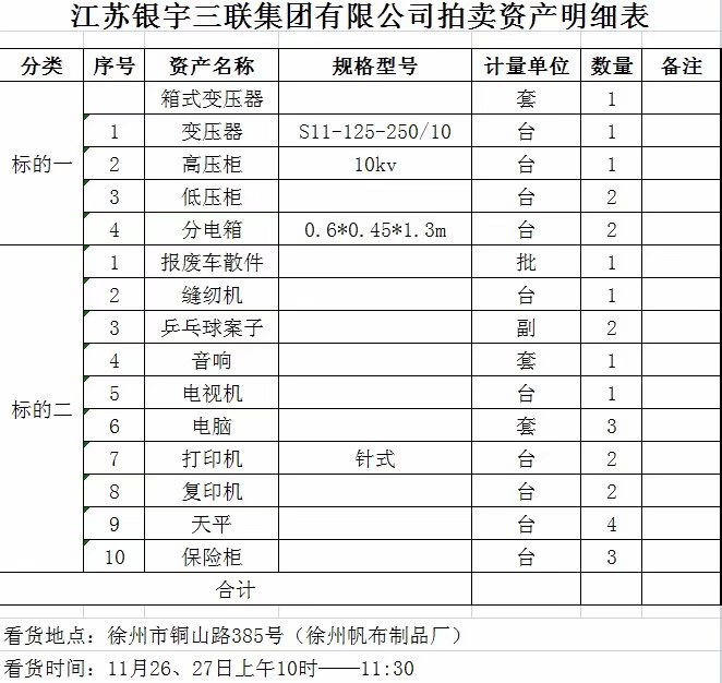 2、銀宇三聯(lián)集團(tuán)廢舊物資一批,主要包含:變壓器、高低壓柜、報(bào)廢車(chē)散件、電腦、辦公設(shè)備等。