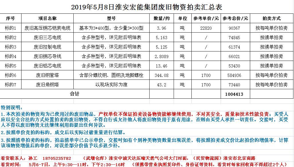 關注微信公眾號受淮安宏能集團有限公司委托,我公司將通過中國拍賣行業(yè)協(xié)會網(wǎng)絡拍賣平臺以網(wǎng)絡競價的方式公開拍賣以下廢舊物資,主要包括:高壓銅芯電纜、控制電纜、銅芯導線、鋁芯電纜、角鋼塔、鋼管塔等。