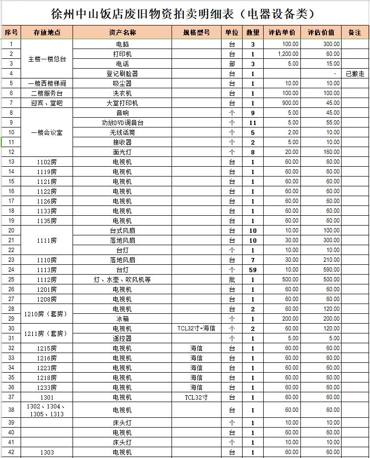 關(guān)注微信公眾號我公司受委托,定于2021年1月18日10時(shí)在中拍平臺通過網(wǎng)絡(luò)競拍方式公開拍賣:徐州市中山飯店、漢元商貿(mào)公司廢舊物資一批,主要包括廢舊電器設(shè)備、酒店用具等。