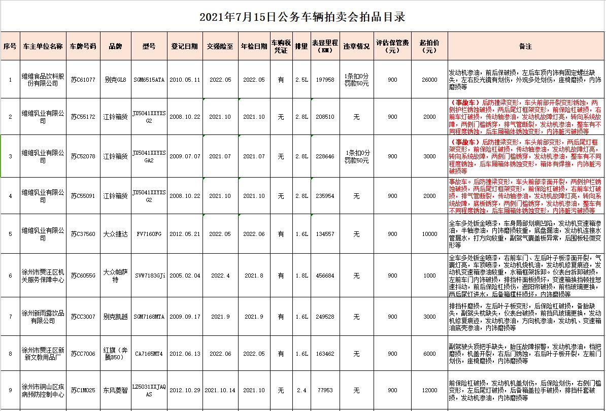 關(guān)注微信公眾號(hào)受委托,我公司定于2021年7月15日10時(shí)在中拍平臺(tái)通過(guò)網(wǎng)絡(luò)競(jìng)拍方式公開(kāi)拍賣(mài)以下公務(wù)車(chē)輛: