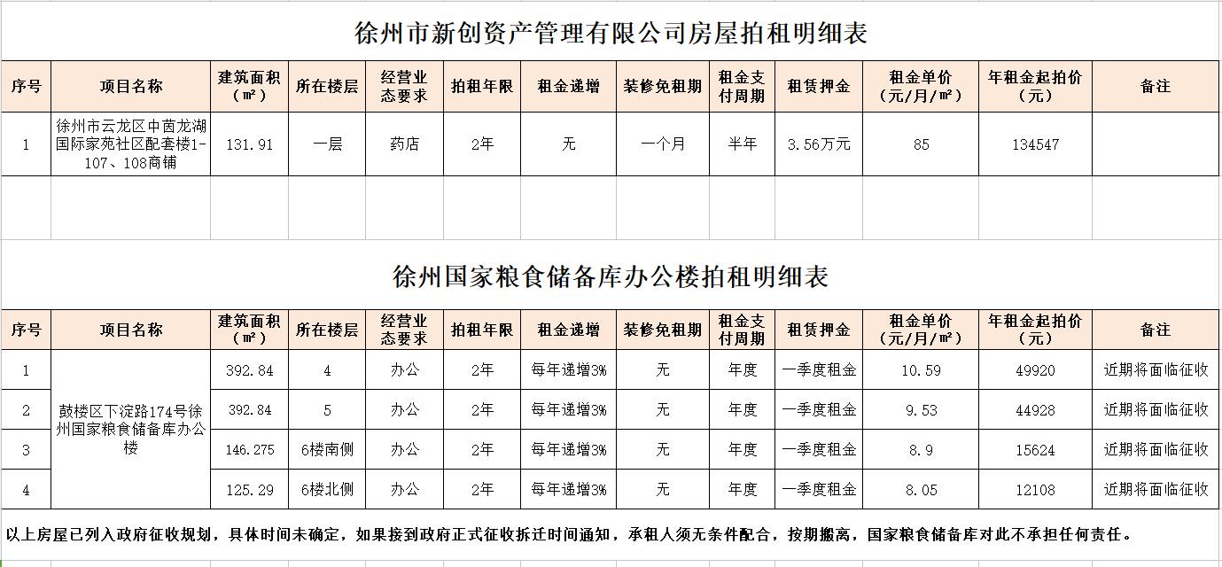 1.云龍區(qū)中茵龍湖國際家苑社區(qū)1-107、108商鋪,建筑面積131.91㎡。(租期2年,僅限經(jīng)營藥店。保證金2萬元,須交至徐州市公共資源交易中心賬戶)